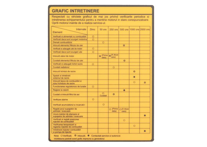 Combustibil: motorină conform sezonului (0# vară, −10# iarnă, −35# temperaturi scăzute)