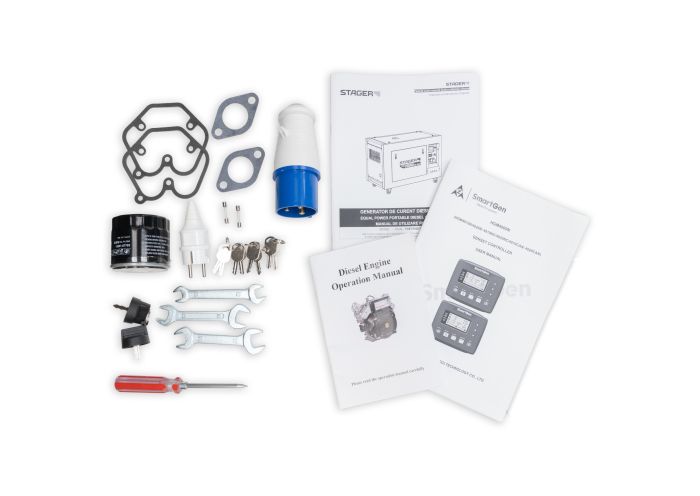 • Set de livrare extins – include filtru de ulei, garnituri de rezervă, ștechere (Schuko și CEE), chei, scule și siguranțe fuzibile de rezervă.