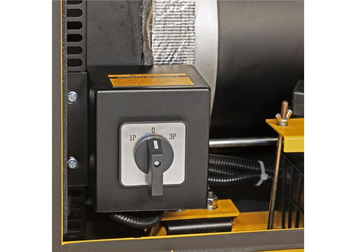 • Două generatoare într-unul singur – comutatorul 1P–0–3P permite trecerea între regim monofazat (230V) și trifazat (400V), cu puterea de 11,5 kW disponibilă atât pe monofazic, cât și pe trifazic.