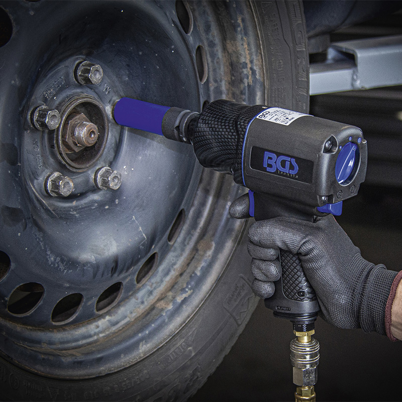 Masina cu putere foarte mare si un consum de aer extrem de redus, ceea ce duce la realizarea unei importante economii de aer comprimat si implicit de energie. Masina de insurubat cu impact BGS 9320 este extrem de puternica datorita mecanismului de impact de tip TWIN HAMMER care confera sculei o maxima eficienta. De asemenea masina este foarte usoara, raportat la momentul de strangere maxim, fiind usor de lucrat cu ea, mai ales la strangeri in serie. Carcasa este din material compozit pentru confort ridicat in exploatare si greutate redusa. Evacuarea aerului se face prin manerul izolat termic. 3 trepte de reglarea puterii la strangere (spre dreapta) si putere maxima la desfacere (spre stanga).